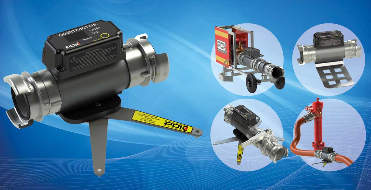 Le débitmètre électronique POK est disponible du DN40 au DN150. Il offre une technologie électronique avancée avec connexion USB et Bluetooth. Sa batterie lithium offre une autonomie de 12 h (recharge possible sur allume-cigares). La gamme de débitmètres POK propose une plage de mesure de 20 l/min à 25000 l/min suivant les modèles (précision des mesures de +/- 1.5% au débit et +/- 1% à la pression).